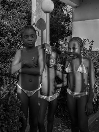 ITALY. Castel Volturno. July 2018. The kids playing in the swimming pool in Castle Volturno. From Nigeria. The youngest Annabell was born in Italy and speaks Italian better than English.