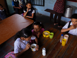 VENEZUELA. Caracas, 2019. Children eat their lunch in the NGO...