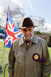GB. England. London. Parliament Square. Brexit portraits. UKIP Supporter. 2019.