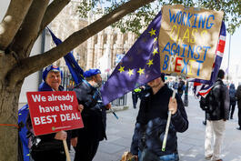 GB. England. London. Outside the Houses of Parliament. Brexit...