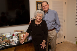 USA. Phoenix, Arizona. 2019. Gerda Weissmann Klein with her youngest son Jimmy at her apartment in the Sagewood Senior Community. Gerda Weissmann Klein is a holocaust survivor.