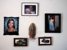 EL SALVADOR. Intipuca, La Union. 26 September, 2018. Framed photographs of family members living in the United Sates are hanged on the wall of Catalina Silva de Medina, a resident of Intipuca. Some 5.3 million Central American immigrants live in the United States, 2.9 million of them from El Salvador, a country of just 6.3 million people whose recent history has been blighted by civil war, gang violence, and economic struggles.