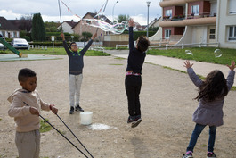 France. Chartres (Lucé). PEP. Centre social Clos Margis. Cité de Béguines. Soap bubbles. 2017