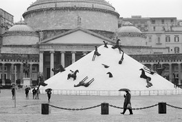 ITALY. Naples. 1995. Mimmo PALADINO's sculpture in Piazza Plebiscito