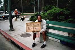USA. Los Angeles. 1991. Homeless man on Sunset Boulevard.