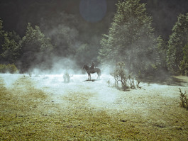 CHILE. 2019. Horaldo waits in the early morning mist for Ernesto...