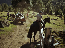 CHILE. 2019. To deliver the kitchen stove and the rest of the materials the caravan needs to pass accross most neighbours´ properties. It is a long journey but a very social one.