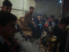 IRAQ. Dohuk. 2019. -- Boys and young men have lots of time to think and little to do at the camps around Dohuk, where some of the roughly 250,000 Yezidis have been displaced from their homes, afraid to go back. February 2019