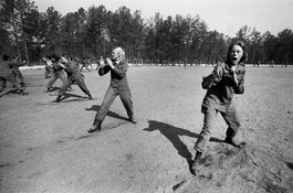 USA. Fort Jackson, South Carolina. 1975. Close combat exercise, although women are not supposed to go into combat the Pentagon feels they should know self-defense.