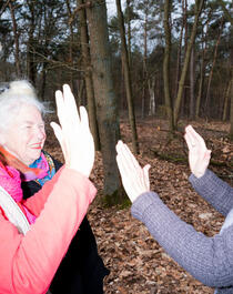 ’T Heidenhuis dementia day care centre. Rie Kempen van Hinsberg (82) at the outddor gymnastics.