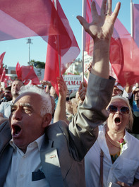 TURKEY. Istanbul. 2018. People wave Turkish flags during opposition...
