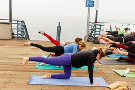 USA. California. Santa Monica Pier. Yoga. 2018.