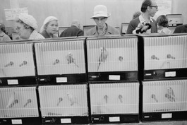 GB. England. London, Lambeth Country Show. Budgies for sale. 1974.