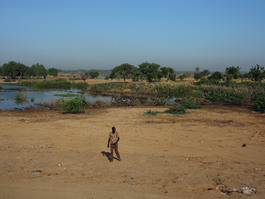 CAMEROON. Kousseri. November, 2017. A man walks on the Cameroon side of the Legone River, the natural border between Cameroon and Chad, near the town of Kousseri.
