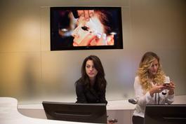 BRAZIL. Barra De Tijuca, Rio de Janeiro. July 10, 2014. Tabatha and Raphaela, receptionistas for CKamura Hair Salon in Village Mall.