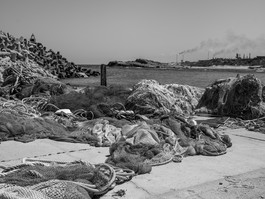 Fishing nets confiscated by the Libyan Coast Guard from illegal fishing boats, kept at the port of Zawiyah, Libya.