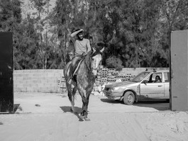 Abdulrahman Al-Bija, a former revolutionary fighter and now a Libyan Coast Guard commander in Zawiyah, rides his horse in a farm on the outskirts of Zawiyah.