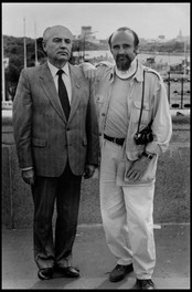 USSR. Moscow. 1993. Magnum Photographer ABBAS with a cardboard version of Mikhael GORBATCHEV.