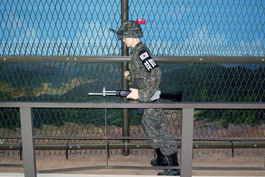 DMZ, South Korea. March 21, 2018. A mannequin of a South Korean soldier on display at a visitors center to the 3rd Infiltration Tunnel, a tunnel diged by North Korean soldiers that was discovered by the South Korean Army in 1978. The tunnel is now a tourist attraction to visitors of the DMZ.