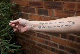 UK. Black Country. 2015. Barbara's tattoo at the resource center....
