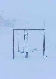 GREENLAND. Oqaatsut. 2018. Playground set in the snow. Oqaatsut, a small village of about thirty inhabitants faces the same existential question as many of Greenland's smaller communities - can the community survive if the younger generation leaves for the city?
