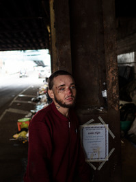Damien, 30, from Camden New Jersey. He ended in Kensington several months ago. He's epileptic and he hurt himself after a crisis the day before. Damien lost 2 brothers that got killed during a drug deal. His young sister got raped and killed when he was 19: "That was the trigger for me, I started to shoot heroin."