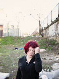 Shannon, 34, from Delaware County, high on heroin, stands for a portrait in Kensington Avenue. She can't keep her eyes open. She started taking percocet, an opioid pain killer, when she was 15, then she got hooked on heroin because it is much cheaper, only 5 usd per dose in Philadelphia.