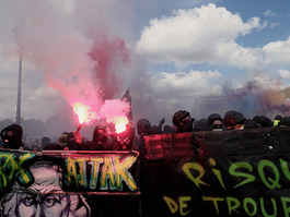 FRANCE. Paris. 1 May 2018. May Day demonstration. Thousands of demonstrators marched across Paris during May Day, joined by protesters from far-left anarchist group Black Blocs.