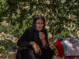 IRAN. Sousan Sorkhab, Khuzestan. 2018. Shahpari Mohammadi, 53 years old, smoking a cigarette. I am suffering from many sorrows in my life, that’s why I’m thinner than many other Bakhtiari women. My life is a tragedy. I lost my brother in a car accident, he was only 25 years old and had a 1 year old daughter. He was so handsome as if he came from a fairytale. If I had an image of him and I could show you. You would put your hand on your eyes because of his beauty and innocent face. I started smoking Shish-a at the time I gave birth to my first son and it has been a few years that I smoke cigarette instead. Smoking cigarettes is not a common thing for women in nomadic life. It’s possible to say that women would become a grown up person for the others at the time they give birth to a boy. “ It’s not in our nature to ask for our inheritance.” Women asking for their rights and inheritance is a huge deal within Bakhtiari since they believe that men should always have the power in family.