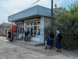 AZERBAIJAN, Lankaran. 2018. People wait near the bus station in Separadi village.