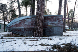UKRAINE. Svyatogorsk, Donbass region (East Ukraine). 2018. Boat. Abandoned and no longer functional youth camp built by Soviet Union primarily for children of coal miners and members of the "Pioneer" youth organization created to develop loyalty to the state and to the Communist party.