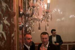 FRANCE, Paris, 2017/03/13. Marine Le Pen, Front National, announces her presidential program at Salon Hoche near Parc Monceau. Florian Philippot (right).