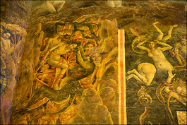 France. Tarn. Albi. The Sainte-Cécile cathedral. The episcopal city, situated around the cathedral, was added to the UNESCO list of World Heritage Sites in 2010. The cathedral, a masterpiece of the Southern Gothic style built between the 13th and 15th centuries, is characterised by a strong contrast between its austere, defensive exterior and its sumptuous interior decoration. The painting of the Last Judgement attributed to unknown Flemish artists which originally covered nearly 200 square metres (the central area was later removed). 2016