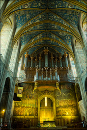 France. Tarn. Albi. The Sainte-Cécile cathedral. The episcopal city, situated around the cathedral, was added to the UNESCO list of World Heritage Sites in 2010. The cathedral, a masterpiece of the Southern Gothic style built between the 13th and 15th centuries, is characterised by a strong contrast between its austere, defensive exterior and its sumptuous interior decoration. The interior of the cathedral looking west to the painting of the Last Judgement attributed to unknown Flemish painters which originally covered nearly 200 square metres (the central area was later removed). 2016