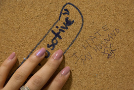 UK. 2016. A refuge in the Black Country. Messages left on Tilak's board.