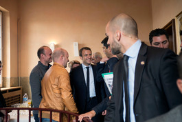 FRANCE. Oradour-sur-Glane. April 28, 2017. Emmanuel MACRON visited the village of Oradour-sur-Glane, where the presidential candidate paid his respects to the 642 victims massacred by the Nazis in 1944.