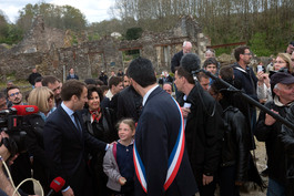 FRANCE. Oradour-sur-Glane. April 28, 2017. Emmanuel MACRON visited the village of Oradour-sur-Glane, where the presidential candidate paid his respects to the 642 victims of the 1944 massacre.