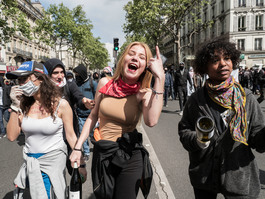 High school students along with far left activists are protesting against both candidates of french election, Marine Le Pen and Emmanuel Macron.