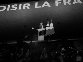 Nicolas DUPONT-AIGNAN, who announced his support for Marine LE PEN in the French presidential elections, opens the rally with a speech.