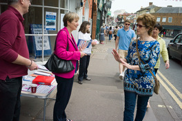 GB. England. Farnham. Louise Irvine for the National Health Action Party on the campaign trail.