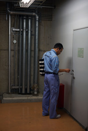 An employee of the Metropolitan Area Outer Underground Discharge Channel (MAOUDC), an underground water infrastructure project in Kasukabe, Saitama, Japan, opens a door leading to the pump room.