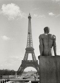FRANCE. Paris. View from the Jardins du Trocadero on the statue L'Homme de Pierre Traverse and the Eiffel tower. 1937.