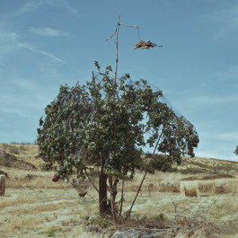 SPAIN. 2011. A fake falcon protects a fruit tree form the birds.
