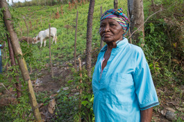 HONDURAS. Guadalupe. 2018. Emiliana, 81, unable to harvest yuca with cows invading her land.