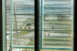 SWITZERLAND. Lausanne. Mars. 2018. New technology and innovation. Ecole Polytechnique Federale de Lausanne. EPFL. The campus seen through the screen of the MED3 building.