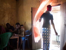 TANZANIA, Arusha Region, Longido area 2018/02. Restaurant catering to mostly Maasai herders and traders who come to the weekly community market. In 2016/4 ruby was discovered in the village of Mundarara, a traditional poor Maasai grazing area. Since then there has been a boom of ruby exploration, locals and arriving traders, but also an increase in evictions from the land where ruby can be found.