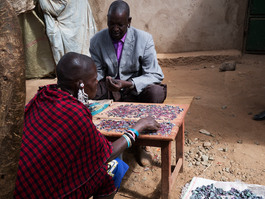 TANZANIA, Arusha Region, Longido area 2018/02. Maasai local ruby traders. In 2016/4 ruby was discovered in the village of Mundarara, a traditional poor Maasai grazing area. Since then there has been a boom of ruby exploration, locals and arriving traders, but also an increase in evictions from the land where ruby can be found.