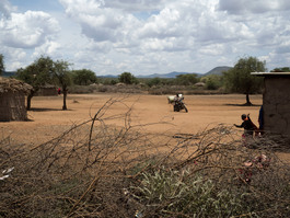 TANZANIA, Arusha Region, Longido area 2018/02. Maasai husband of two wifes. He was evicted by a combination of government and commercial deal, by force and his hut destroyed. Had to move 10km inland. But also is successfully involved in the ruby business and has been able and continues building a house, restaurant etc. in the center of the booming village. In 2016/4 ruby was discovered in the village of Mundarara, a traditional poor Maasai grazing area. Since then there has been a boom of ruby exploration, locals and arriving traders, but also an increase in evictions from the land where ruby can be found.