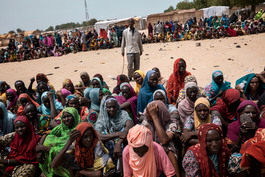 NIGERIA. 2017. Maiduguri. A food distribution in Muna garage...