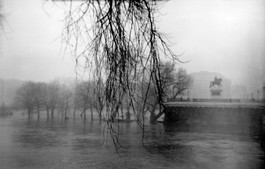 Rising of the Seine. 1955. 1st arrondissement. Pointe du Vert-Galant, Pont-Neuf (statue of Henry IV). The second picture taken by Guy LE QUERREC at age 14.
